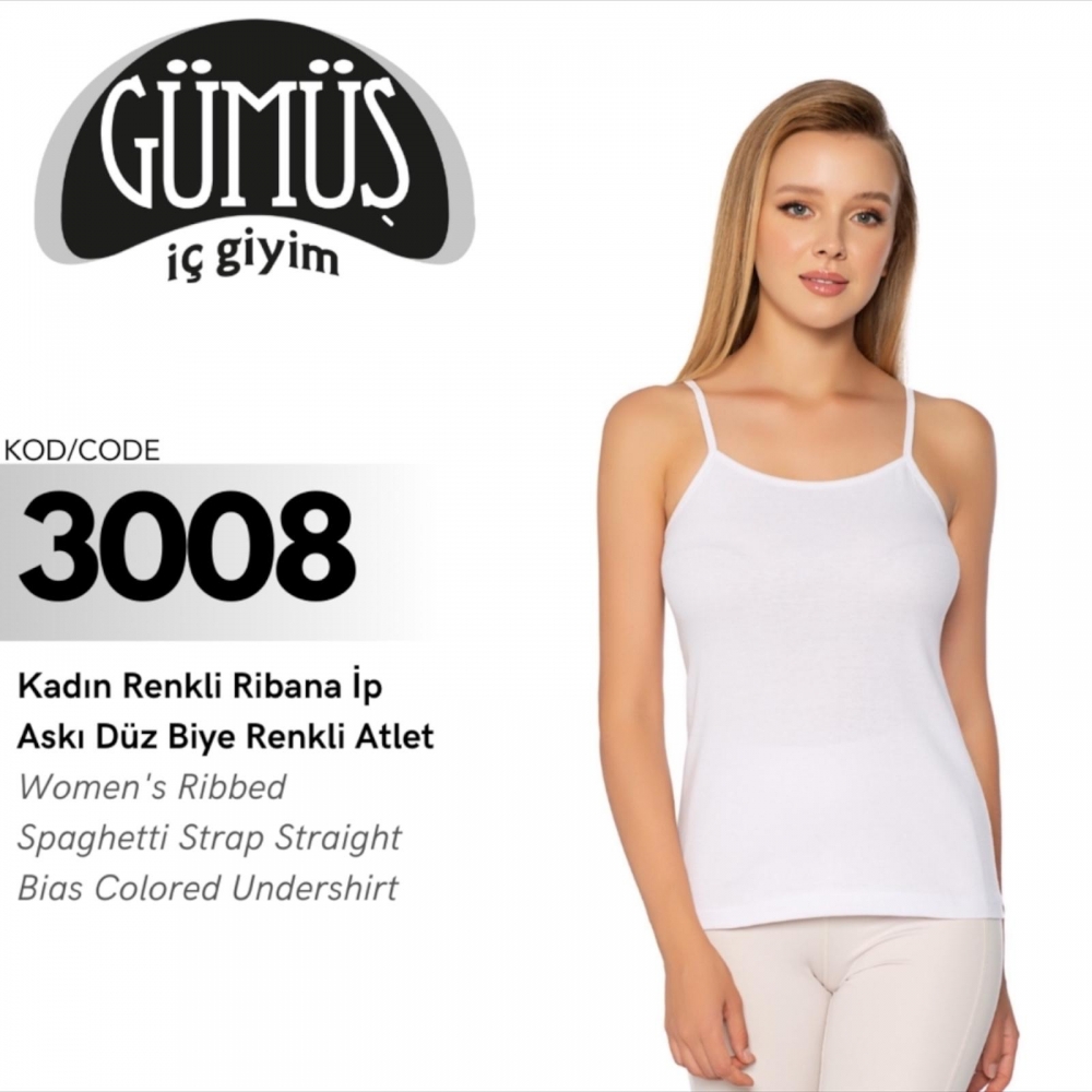 GÜMÜŞ 3008 BATTAL KADIN RİBANA İP ASKI DÜZ BİYE ATLET