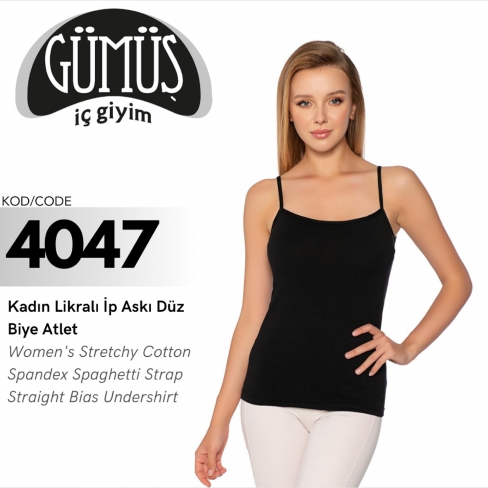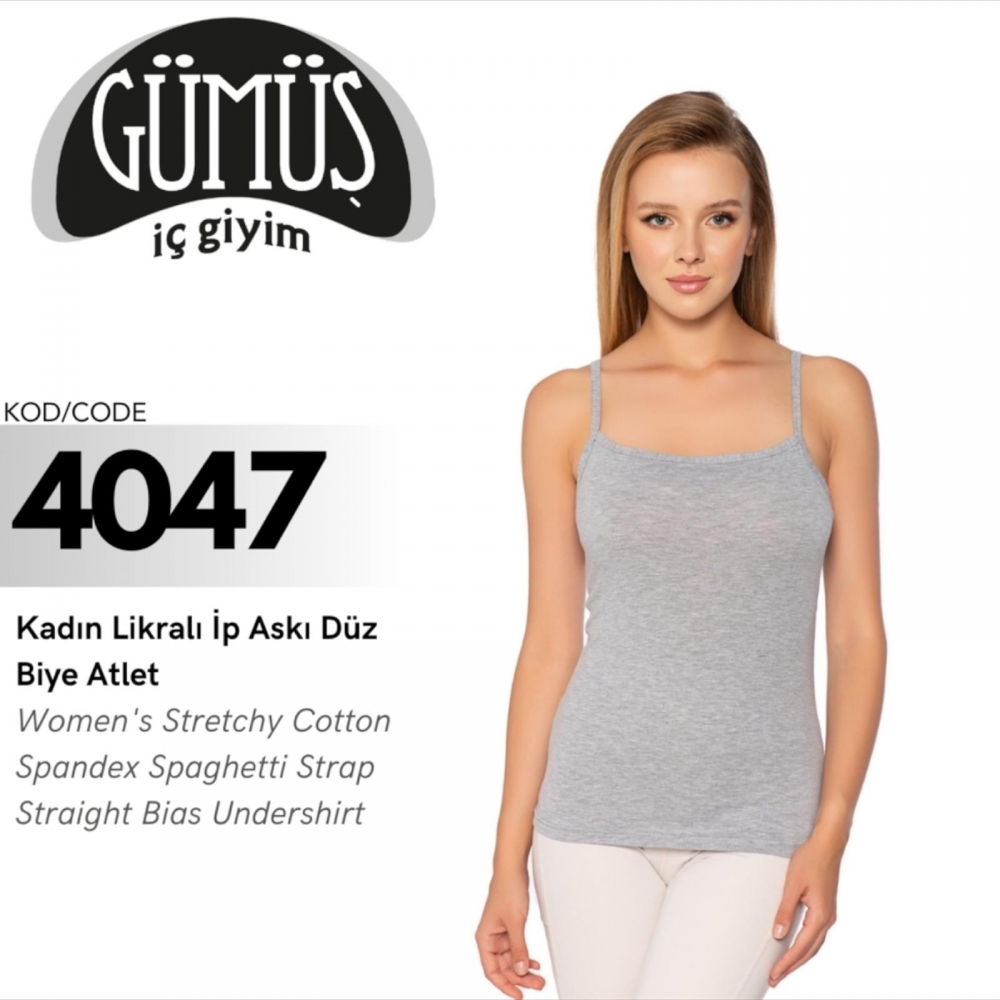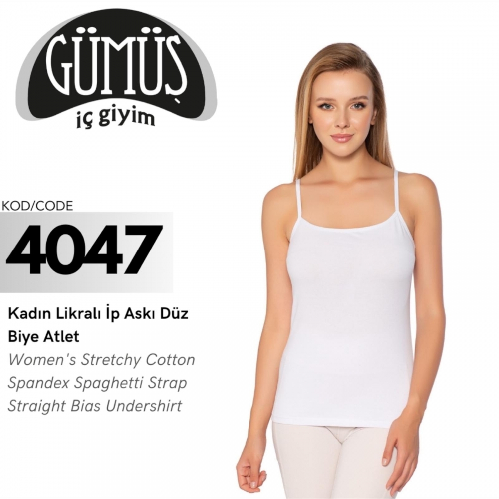 GÜMÜŞ 4047 BATTAL KADIN LİKRALI İP ASKI DÜZ BİYE ATLET